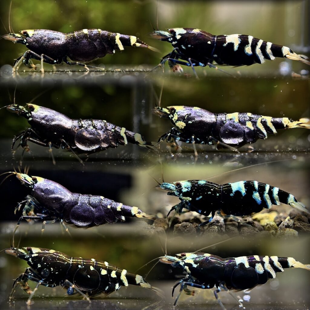 Topへ戻る ナナシーシュリンプ 2012年に台湾ブリーダーが作出した台湾ピント系の未完成表現(後のパープルタイガー)を元に、日本でリリースされたハイブリッドシュリンプ。腹部のタイガー柄と頭胸部の多様な柄が特徴的で、個体によってはメタリックな色味を放つ。リリース当初は爆発的な人気を博すが、2015年以降のマークⅡ・ギャラクシーブームに押され、市場での扱いはややマイナー化。分類としては縦ラインを加える前の台湾ピントのタイガー表現に最も近い特徴を持つ為、タイガーとピントのハイブリッド感を色濃く残しつつ、ラスティ・メタリックパープル・ダイヤモンドダストなど多層的な表現を楽しめる“変化に富んだ品種”。流通数は少ないものの、固定化の進んだ国外系統と多様な表現を持つ国内系統が存在し、独自ラインを作り込みたいブリーダーには絶好のチャレンジ個体です。 ナナシーをもっと知る LINEUP 稚えび10匹セット(保証+特典付き) 種親水槽の稚エビ(SOLD OUT) 0 円 詳しくみる テコ入れor外掛け用 種親 0 円~ 詳しくみる Youtube Twitter Instagram Copyright © biz研シュリンプ